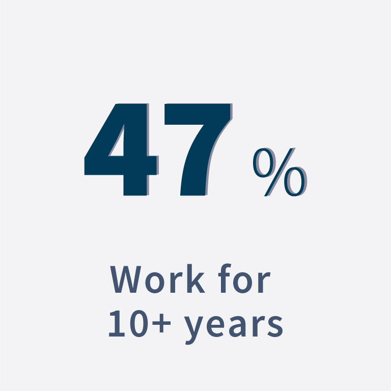Rolear Group has a universe of about 266 employees. Nearly 47% are senior officers/managers that work in this company for more than 10 years. In addition to cultivating a policy of seniority, guaranteed by the appropriate working conditions and personal and professional valuation of its employees, the Group´s business dynamics is also led by the permanent commitment to the hiring of new qualified staff and job creation.